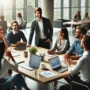 DALL·E 2024-12-31 14.47.07 - A modern corporate office setting with a confident and approachable manager leading a diverse team in a brainstorming session. The manager is smiling