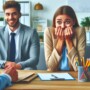 A lighthearted office interview scene — candidate looking embarrassed Bright, funny, realistic work (1)