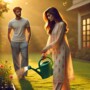 (He stands there, unable to look away as she continues watering the plants. The sound of water hitting the soil and the chirping of birds create a peaceful melody in the background.)